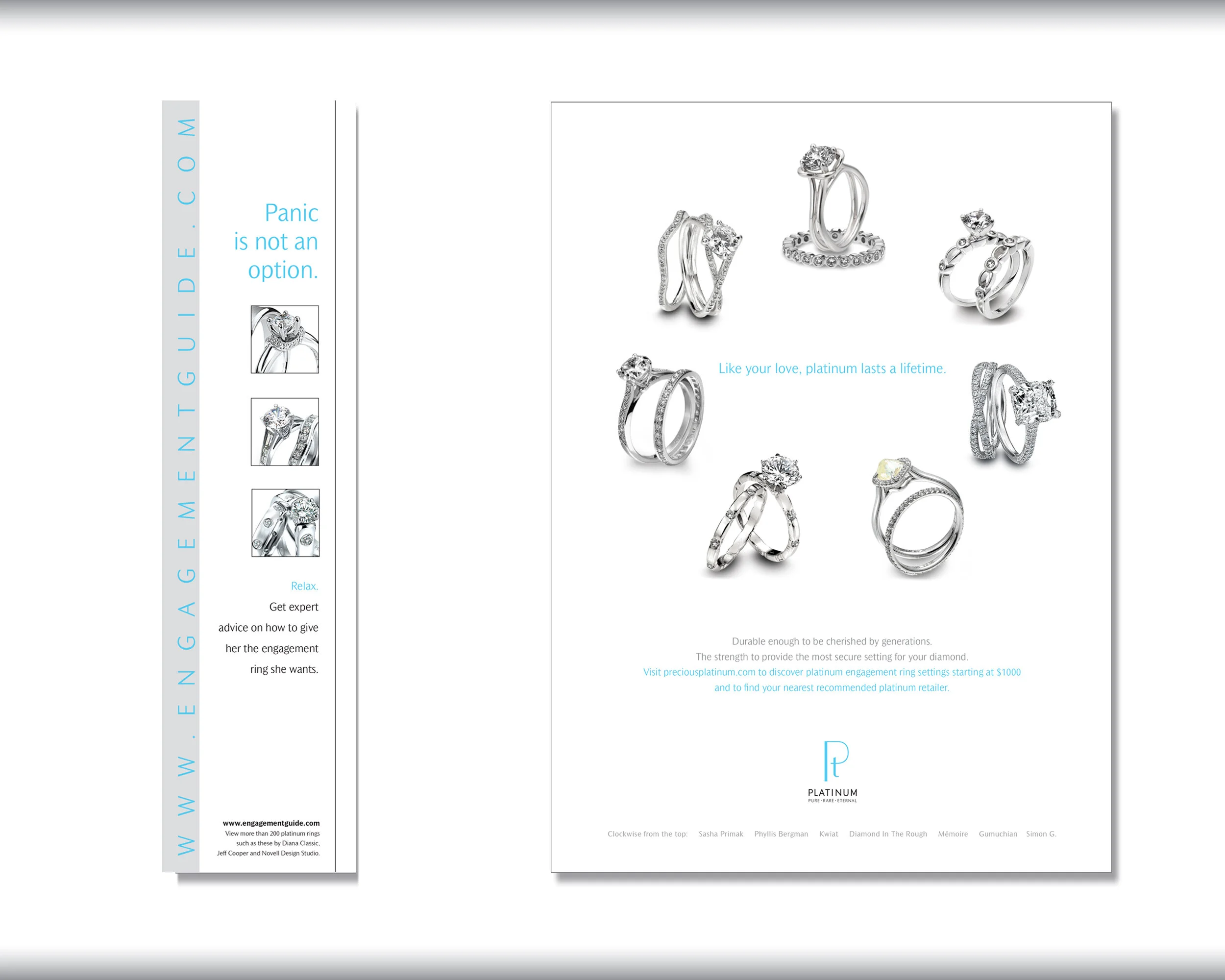 The best jewelry designers create engagement rings using only platinum for its beauty and strength. Print advertising in women’s magazines poses “which platinum?” not “if platinum. In men’s magazines, help is on the way.